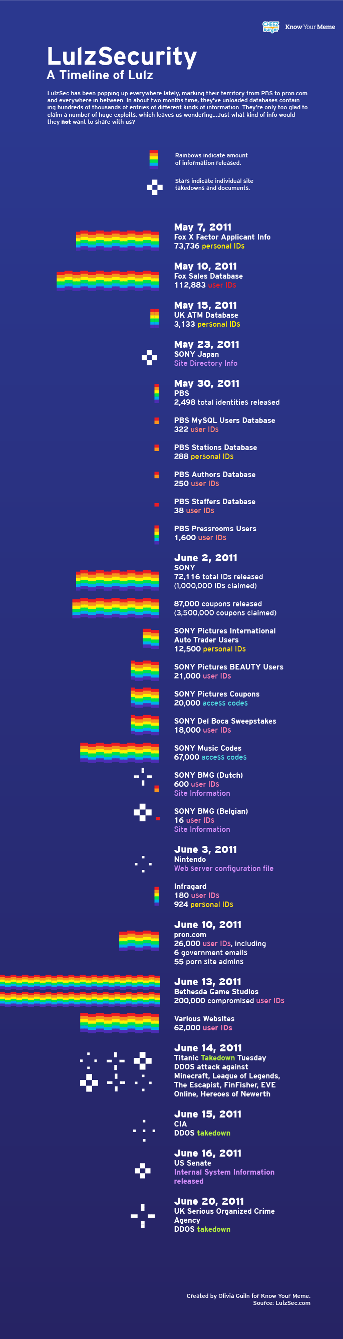 Among other attacks in recent years we include financial institutions, television stations, even high-order organisations like the FBI and CIA. Two groups stand out - Anonymous, and LulzSec.